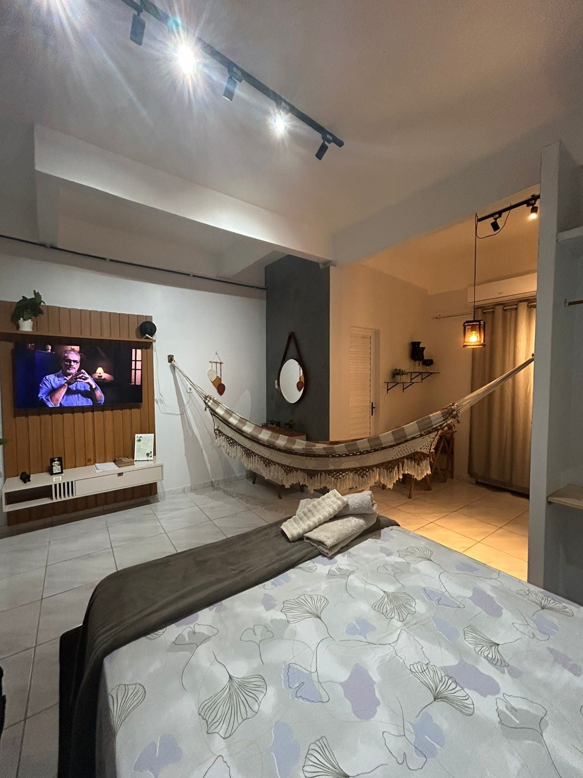 Bienvenido a nuestro acogedor apartamento situado en el barrio de Santa Rita, uno de los más tradicionales de Macapá. 🛏️ 1 dormitorio: Aire acondicionado de 12 000 BTU 1 cama tamaño queen + 1 cama doble (en la misma habitación, con capacidad para 4 personas) Armario con espejo Televisión de 50pulgadas Ventana de cortina 🏡 Sala de estar y cocina: Sofá cómodo Mesa con 4 sillas Estufa y nevera sin escarcha Utensilios de cocina