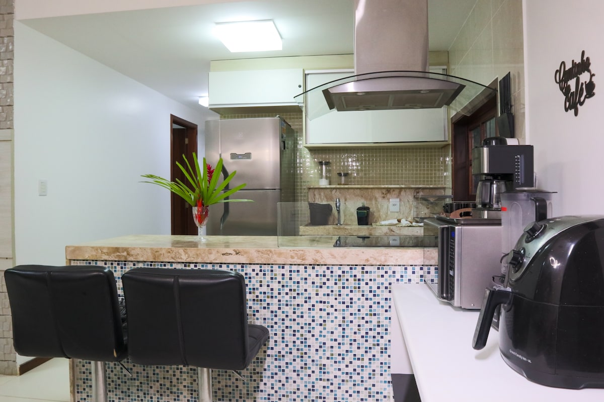 Paga en hasta 6 cuotas sin intereses *Aire en todas las habitaciones Gracias por EL DESEO DE ALOJARTE en nuestra EXUBERANTE Cobertura en el Jardín - 2 Qts - hasta 8 personas. * Piscina privada con zona gourmet en el apartamento *Aceita pet Imagina la experiencia de alojarte en un ático con jardín, pero debo decirte que este tiene un ALTO ESTÁNDAR y una ubicación ideal. Todo está a pie: supermercado/panadería/restaurantes/farmacias/Jangadas/bares Es muy RARO que encuentres un departamento así y puede agotarse pronto.