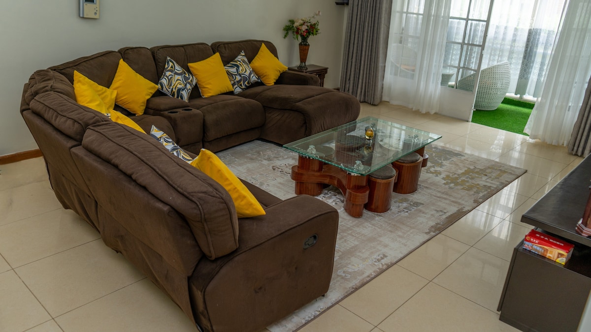 Our spacious 3 bedroom flat is strategically located only 8 minutes from JKIA airport , 23kms from the city centre & is within 18 kms of the National park and has access to malls, hospitals and public transport. It comfortably sleeps 6.
