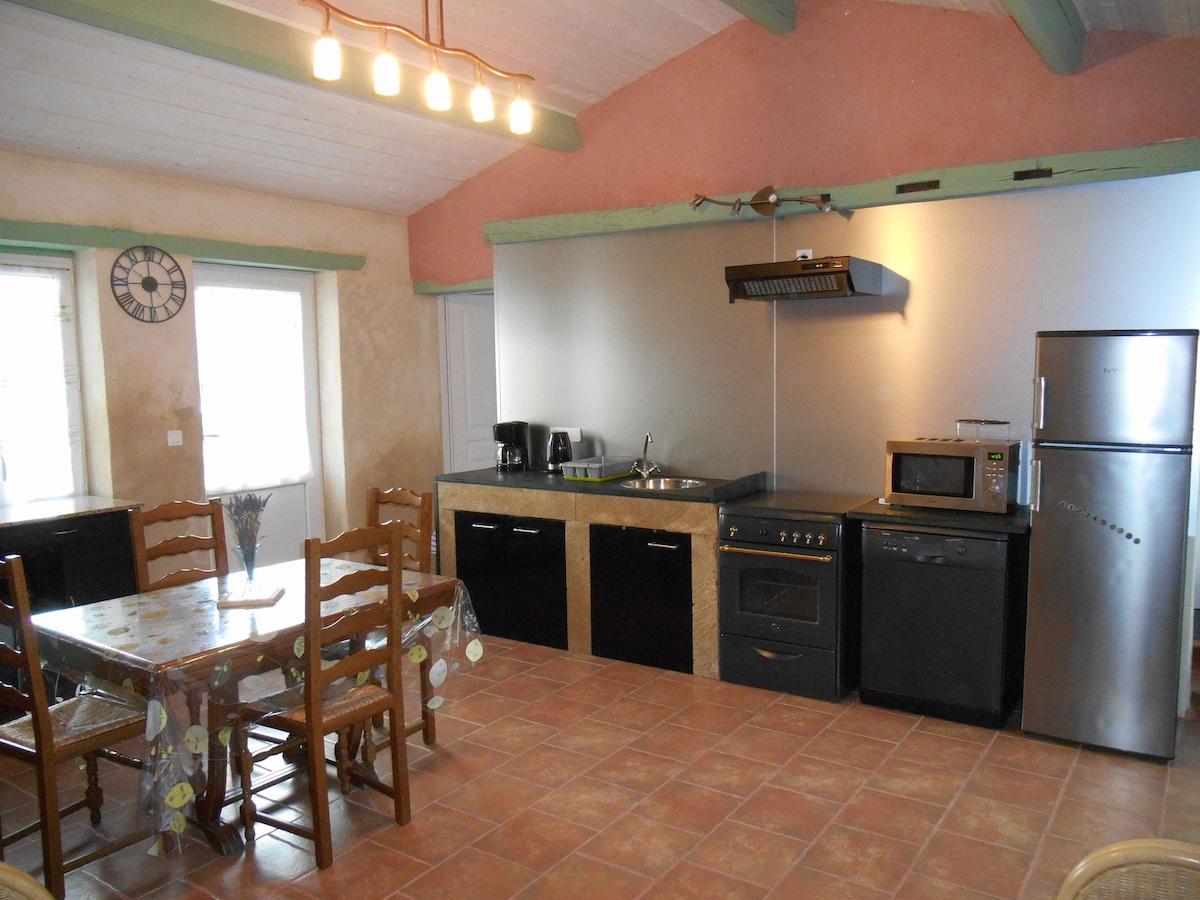Grange en pierre toute équipée Couchages : 1 lit double et 1 canapé double convertible (confortable). Lit parapluie et baignoire bébé gratuit sur demande Activités : La mer à 20min, Nantes à 30min en train ou voiture. Zoo planète sauvage à 20min Legendia Parc à 30min Piscine municipale, cinéma et centre ville à 10min à pied Super U, lidl, Netto à 2min Jardin Espace de cuisson partagé Wifi gratuite