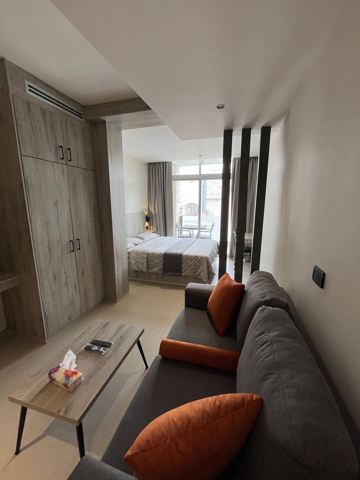 El apartamento de 1 dormitorio Eze está en el segundo piso con una hermosa vista sobre el antiguo Amán. Se encuentra en la zona más atractiva de Amán, entre el casco antiguo de Amán (Rainbow, Abdali, Anfiteatro, Downtown) y el Amán moderno (distritos de negocios y centros comerciales). Sin embargo, también es una zona residencial muy tranquila. Estaremos encantados de recibirte en nuestra propiedad y aplicar la pura hospitalidad jordana al hospedarte.