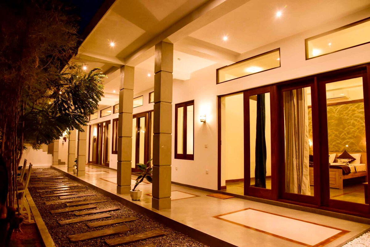 Disfruta del lujo de estilo boutique en esta preciosa casa de diseño arquitectónico a solo 15 minutos del aeropuerto. Disfruta de un elegante dormitorio doble, una elegante sala de estar con modernos y cómodos asientos, comedor, cocina, baño moderno y un tranquilo jardín. En una zona tranquila, pero a solo 5 minutos de la ciudad de Negombo, la playa, los restaurantes y las tiendas. Esta espaciosa unidad con wifi y aire acondicionado es ideal para parejas, amigos o viajeros solos que buscan comodidad, privacidad, conveniencia y una estancia verdaderamente relajante.