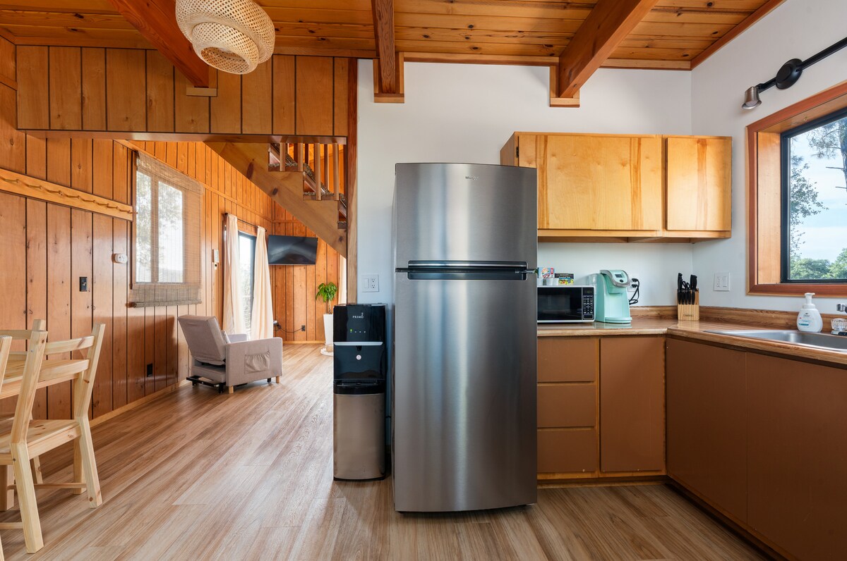 Cozy Tiny Cabin with kitchen and sleeping loft. Enjoy views and the stars on the peaceful 24 acres this cabin shares. Close to Bass Lake and 23 miles to Yosemite South Gate Entrance (Mariposa Grove) or 90 minutes to Yosemite Valley. Amenities include queen bed, full size sofa bed, small sleeping loft with queen, microwave, gas stove, refrigerator, A/C and heat, and a 6-hole disc golf course! This is one of two tiny cabins on the property. Book the Manzanita Cabin also and share with friends.
