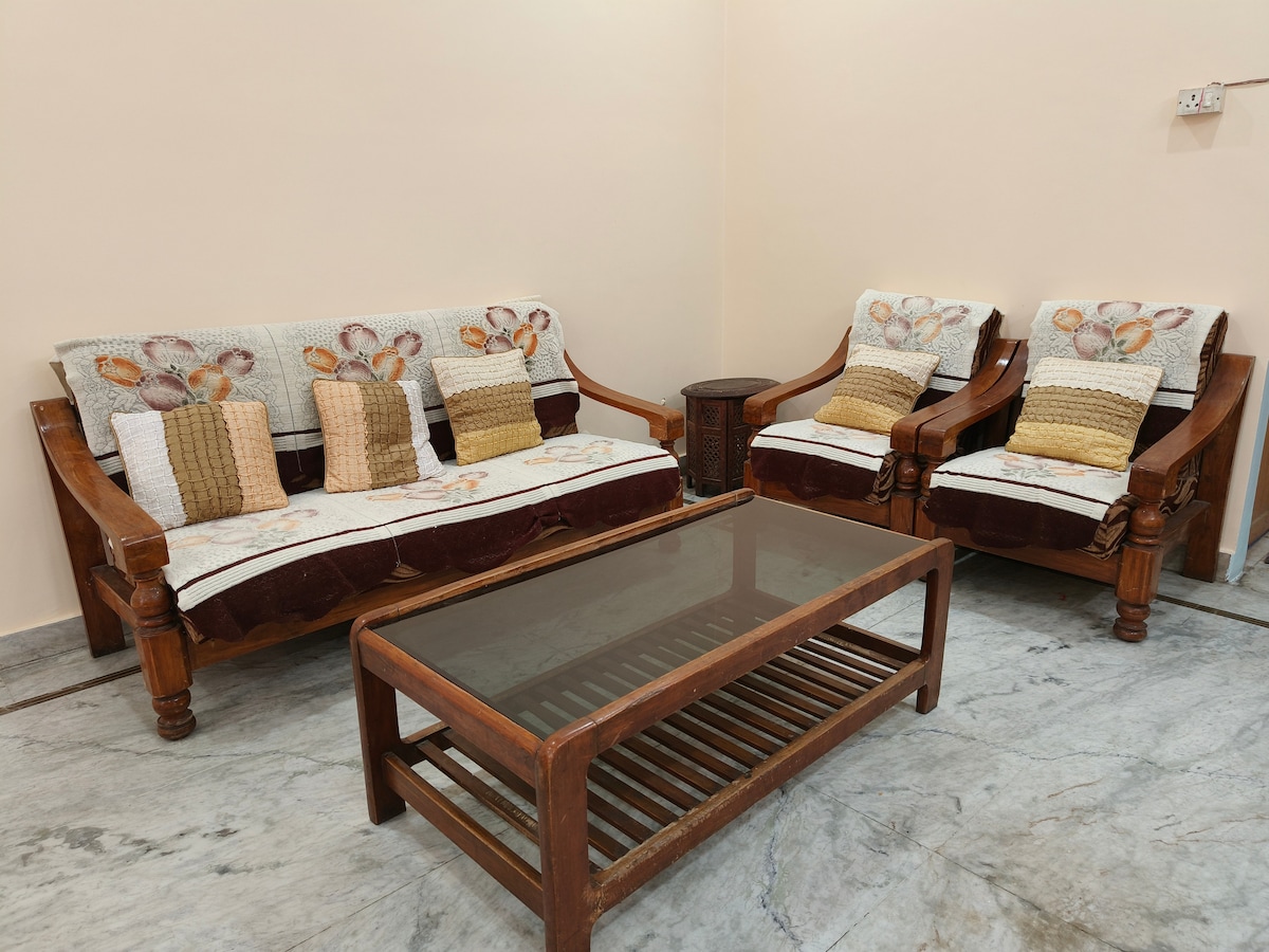 ¡Sumérgete en el corazón de Lucknow! Nuestra encantadora casa se encuentra en una ubicación céntrica, que ofrece fácil acceso a bulliciosos mercados, sitios históricos y joyas locales. Despiértate con las melodías del canto de los pájaros, cortesía del cercano Lohia Park, perfecto para tu carrera matutina. Relájate en habitaciones espaciosas, desconecta en la acogedora sala de estar y no dudes en pedir recomendaciones locales a tus anfitriones. Perfecto para familias grandes que quieren un lugar privado espacioso solo para ellos. ¡Reserva tu alojamiento hoy mismo!