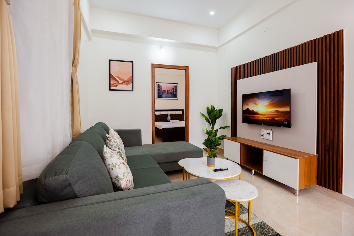 Welcome to Buteak Suites, your perfect urban retreat in the vibrant BTM Layout, Bengaluru. Blending the warmth of apartment living with the sophistication of boutique hotel hospitality, our thoughtfully designed 1 BHK Large Suite(460 sq feet) & Extra Large Suite (530 sq feet). Whether you’re here for work or leisure, enjoy a seamless stay with modern amenities, flexible check-ins, complimentary gym access from fitness yard, and daily unlimited housekeeping.