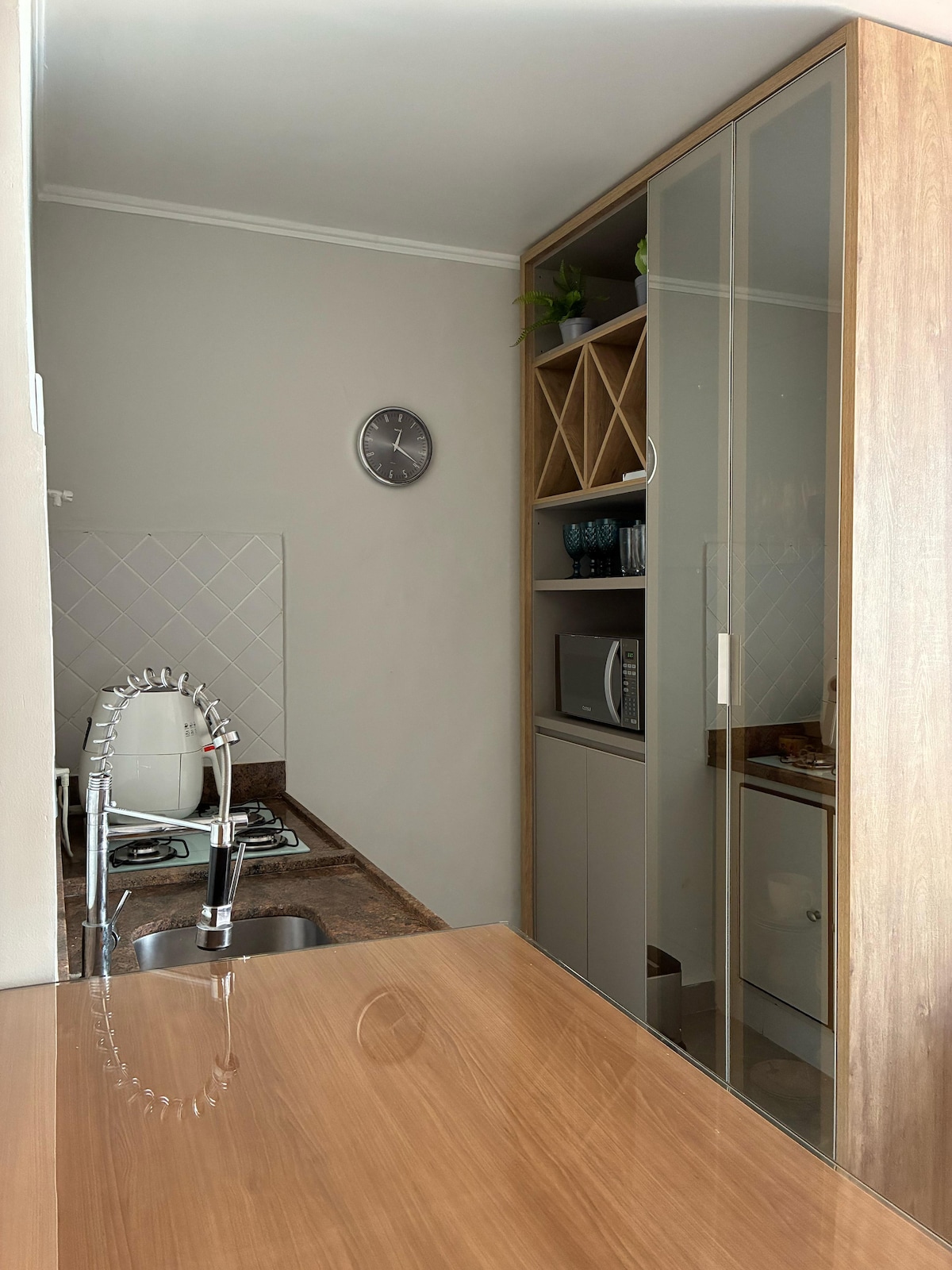 Apartamento amueblado en el centro, situado en la planta 12, con comodidad, practicidad y excelente ubicación. Cuenta con 1 dormitorio con cama doble, 1 baño, sala de estar abierta a la cocina americana totalmente equipada, balcón con vistas a la ciudad, aire acondicionado en la sala de estar y en el dormitorio, televisor y Wi-Fi. Con infraestructura de hotel, piscina, gimnasio, conserje las 24 horas, ascensores y 1 plaza de aparcamiento con servicio de valet. Ubicación privilegiada: a solo unos minutos del centro comercial Santa Úrsula y de la Chopería Pinguim.