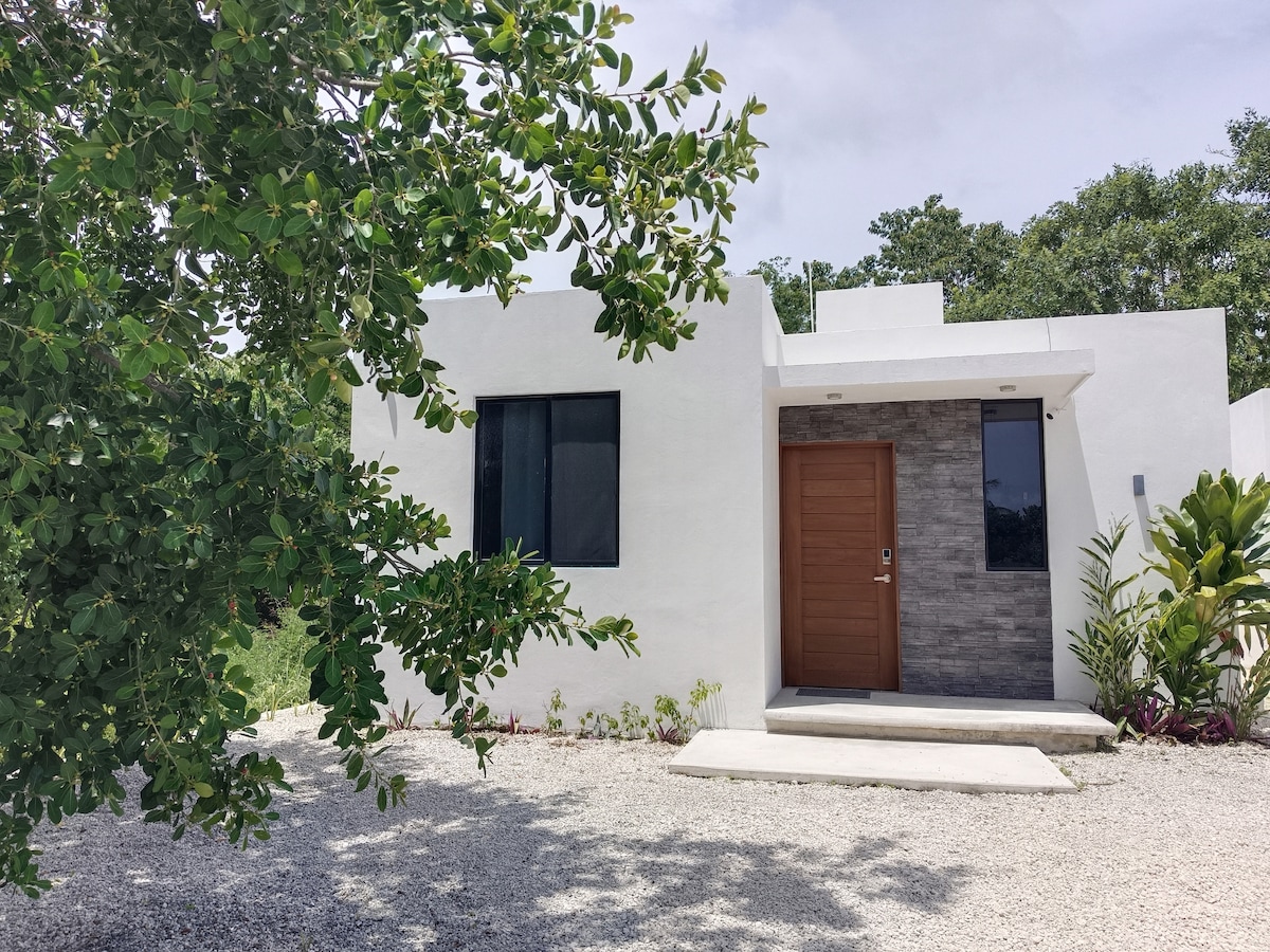 Welcome to Casa Las Palmas, your private tropical hideaway ,just a 15 minute walk from the white sand beaches and turquoise waters of Mahahual. Tucked away in an area surrounded by lush greenery, this charming two-bedroom home offers the perfect balance of comfort, nature, and Caribbean vibes. Relax in the spacious garden filled with palms and native plants—ideal for morning coffee, stargazing, or simply unwinding in total privacy.