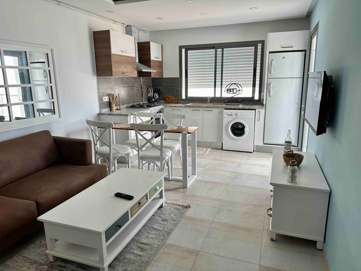 Apartamento céntrico en Mahdia, a solo 10 minutos a pie de la playa. Compras, restaurantes y cafeterías están a tu alcance. El apartamento tiene 2 dormitorios, una sala de estar con aire acondicionado y un dormitorio con aire acondicionado. Con agua caliente, conexión de gas y todo lo necesario para una estancia agradable, ¡ideal para familias o parejas!