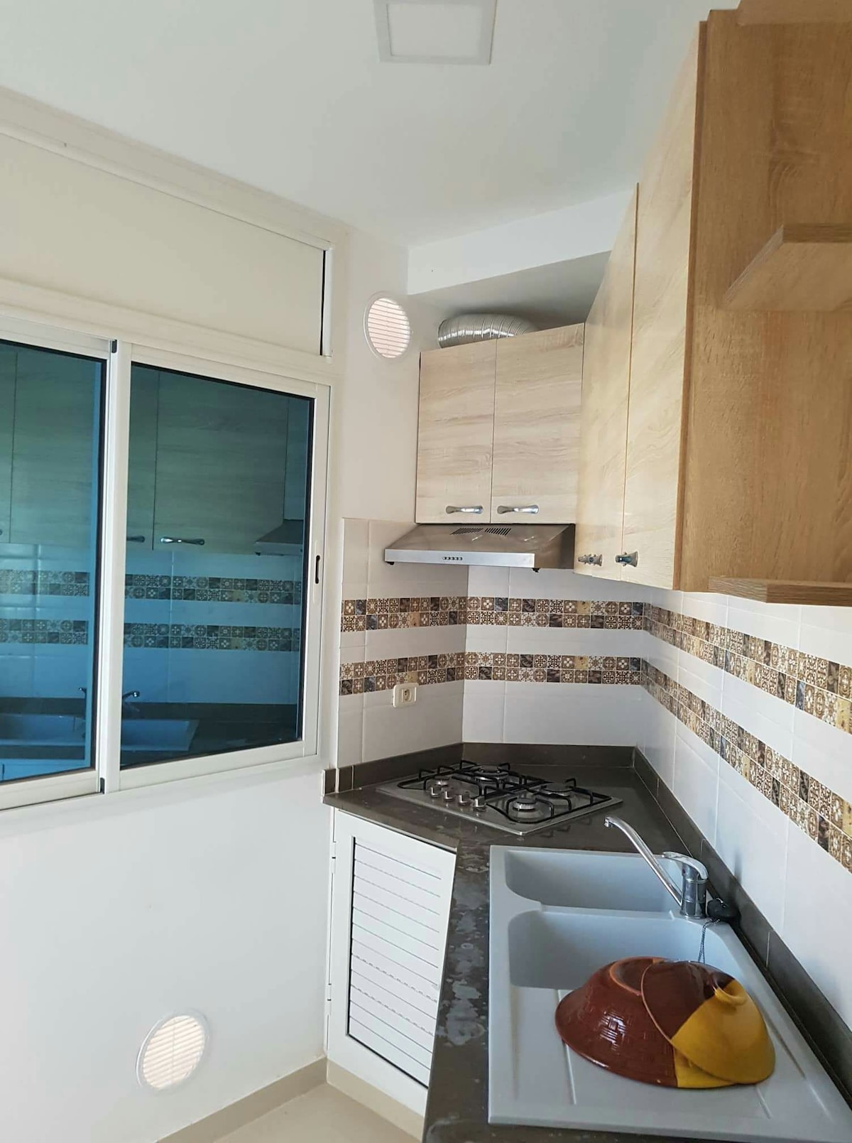 Apartamento a pocos metros de la playa más hermosa de Túnez Dos habitaciones open space salón cocina y un baño con ducha a ras de suelo Un dormitorio principal con una cama queen size y otra habitación una cama un lugar Fantástico apartamento para estancias de verano