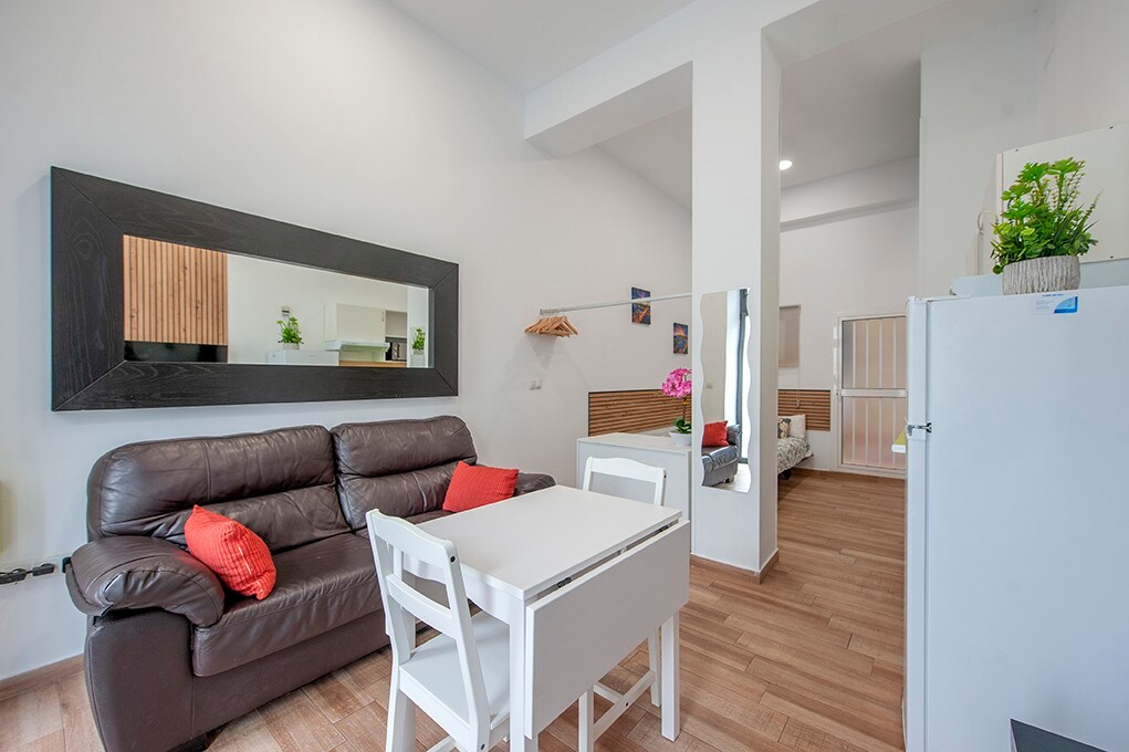 Este encantador apartamento está situado en la entreplanta de la casa. Cocina americana. Amplio baño con ducha. Cama King Size (180 x 200) y sofá cama con una plaza más en el salón. Zona de comedor para 3. Equipamiento integral, con ropa de cama y toallas de algodón 100% para baño y piscina, menaje completo, aire acondicionado, TV con pantalla plana, WiFi gratuito, secador de pelo, lavadora comunitaria, equipo de planchado y una cuidada decoración para que se sienta como en su propia casa.