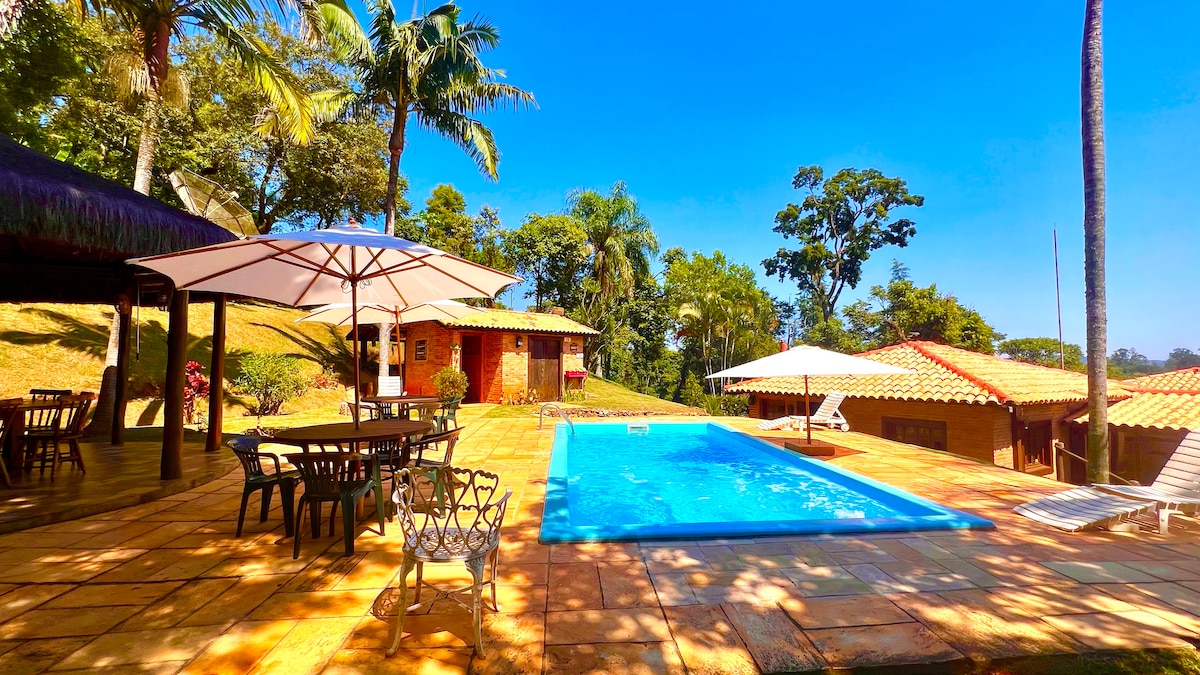 Villa en una propiedad privada inmersa en la naturaleza y con una arquitectura única. ¡Amplia, segura, con lagos, senderos y vistas! ¡La propiedad es súper completa! tiene parrilla, piscina, cancha, balcón en las habitaciones, chimenea, sala de juegos, mesa de cartas, internet, etc. La casa tiene una vista espectacular del valle, con senderos y una pequeña cascada. Perfecta para relajarse durante el fin de semana, vacaciones o incluso para trabajar desde casa. Ideal para familias con niños y ancianos y amigos.