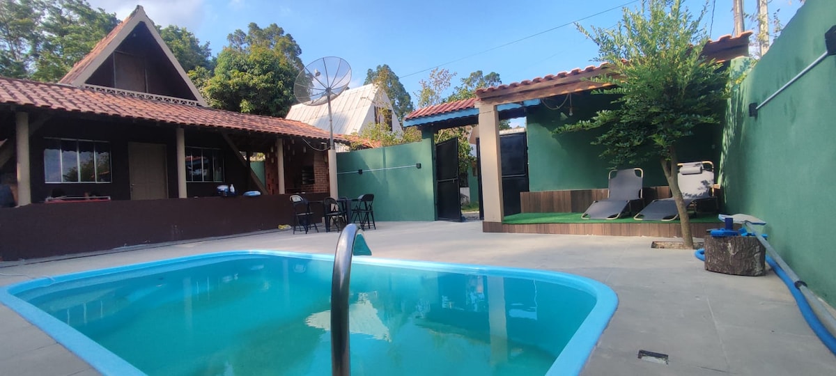 La casa en el campo dentro de un condominio club, ofrece: ✔️ Seguridad las 24 horas. ✔️ Wi-Fi ✔️ 2 suites con acceso a ras de suelo Televisión ✔️ inteligente con canales, películas y series de PPV ✔️ Piscina ✔️ Parrilla ✔️ Mini teatro ✔️ Chimenea ecológica. ✔️ Juego de fondue ✔️ Se admiten mascotas ✔️ Servicio de comida ✔️ Proximo a São Roque (ruta del vino): 30 KM ✔️ Proximo ao Catarina Outlet - 18 KM ✔️ Cercano a los caladeros (PANTANOSSO) ⚠️ Sin ruidos fuertes TARIFAS ESPECIALES PARA 2 O MÁS NOCHES DE LUNES A JUEVES