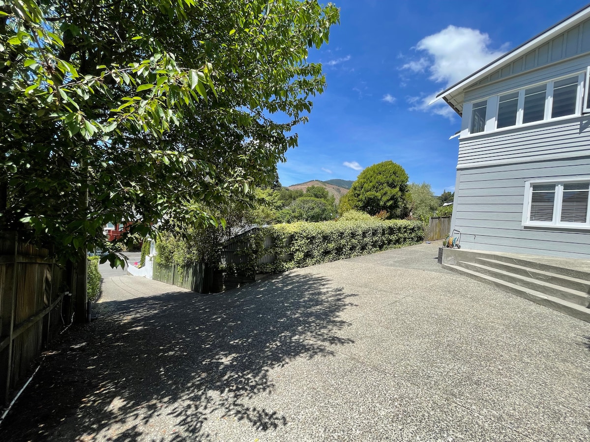 Vivimos en una encantadora zona céntrica de Nelson y tenemos una zona privada separada en la planta baja. Esta zona tiene una cama tamaño queen, baño privado y entrada independiente. Está a 10 minutos a pie de supermercados, cafeterías, comida para llevar y la ciudad. Recientemente renovado, todo es nuevo y está impecable, con TV inteligente y aire acondicionado. Hay asientos al aire libre y aparcamiento fuera de la carretera. Vivimos arriba y estaremos encantados de ayudarte a disfrutar de tu estancia aquí en Nelson.