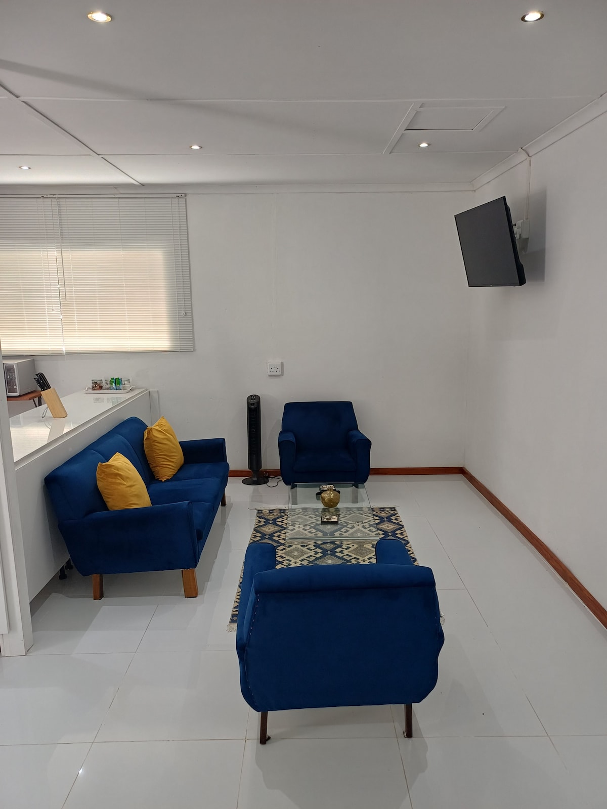 Las camas tamaño king/twin y baño con ducha. Cama individual adicional. Cocina totalmente equipada, mesa de comedor, cocina de gas, DSTV, Netflix, internet rápido, nevera, microondas, tostadora, hervidor de agua, sartén eléctrica, ventilador, mantas eléctricas, aire acondicionado.