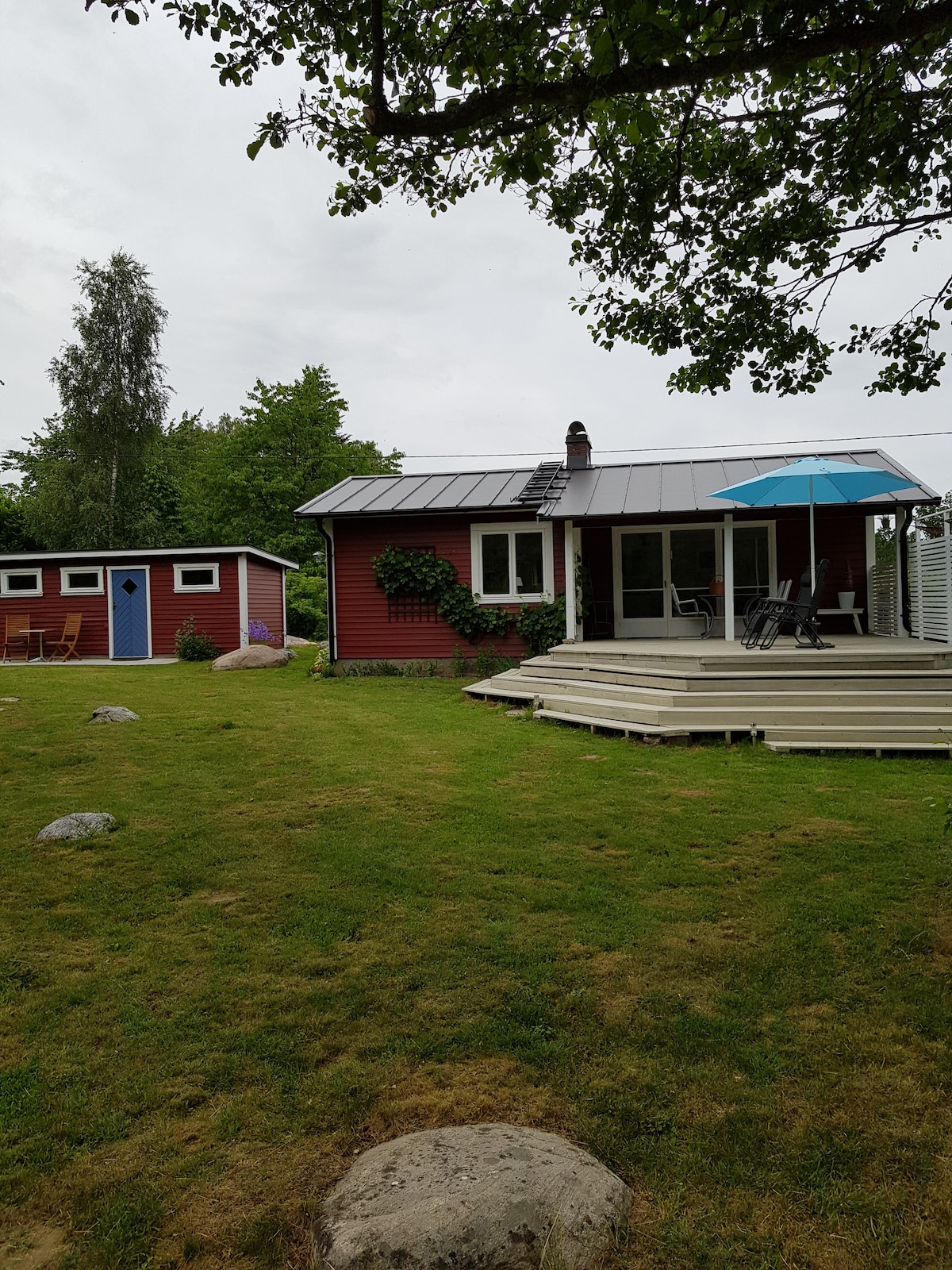 ¡Bienvenido a una estancia tranquila en mi acogedor apartamento! Vivirás en tu propia casa, mi anexo, con acceso a tu propio patio. Delante de la casa hay una zona verde, por lo que te despertarás con el canto de los pájaros cada mañana. Tranquilo y agradable en un callejón. El apartamento consta de salón, cocina, pasillo amueblado, dormitorio con un par de camas (se pueden unir) en la planta superior. Aseo, cuarto de baño, sauna, vestíbulo y lavandería en la planta baja. Hay una pequeña nevera, un par de placas de cocina, microondas y cafetera.