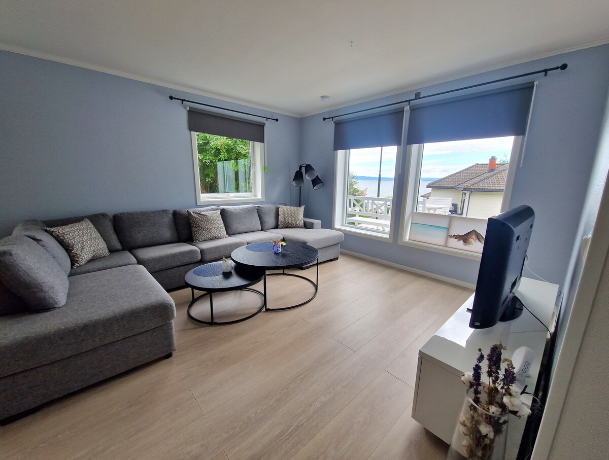 Este acogedor apartamento tiene un agradable jardín y un patio, y una hermosa vista al fiordo/mar. Aquí puedes relajarte y pasar un buen rato, ya sea al aire libre o en interiores. Estacionamiento gratuito para 2 automóviles, lavadora y cocina, por lo que tienes todo lo necesario. Apartamento ubicado en una zona suburbana segura. Autobús a 5 minutos a pie, tren a 8 minutos. Tiendas de comestibles, pizzashop, peluquería y farmacia a 8 minutos a pie. En coche llegarás al centro de la ciudad y a los centros comerciales a 15 minutos. Senderismo Y playas cerca.