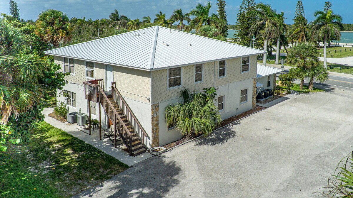 Relájate en la hermosa isla North Hutchinson en esta casa adosada costera. A pocos minutos a pie de la playa. 🏖️ Justo enfrente del Fort Pierce Inlet State Park. Tenemos bicicletas y sillas para la playa para los huéspedes. La unidad es apta para perros con un cargo. Hay muchas actividades en la zona, como playa, surf, pesca, paseos en barco, kayak, esnórquel y otras actividades acuáticas. Cerca hay restaurantes, bares y tiendas frente al mar a 5 minutos en auto. Muchos tienen música en vivo todas las noches.