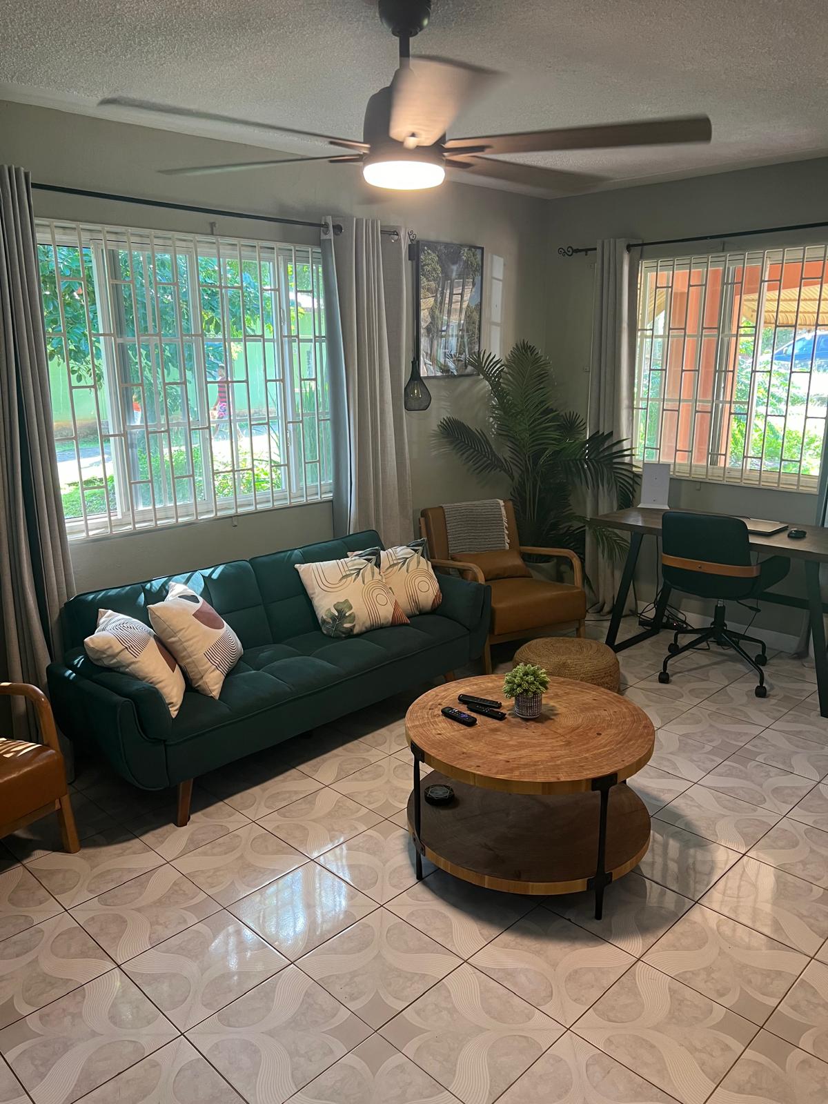 Disfruta y relájate bajo el sol jamaicano, en un apartamento privado y bien equipado de 2 dormitorios/sala de estar/comedor/cocina. Sin instalaciones compartidas. ¡Amplio y perfectamente situado para dar paseos relajantes a las playas cercanas, lo que es ideal para crear los mejores recuerdos en tus vacaciones! La ubicación es perfecta si quieres tranquilidad y, sin embargo, estar cerca de actividades, buena comida y atracciones locales. Servicios: TV por cable, nevera, lavadora, fogones, utensilios, cafetera/tetera, horno microondas. Parking privado Seguro