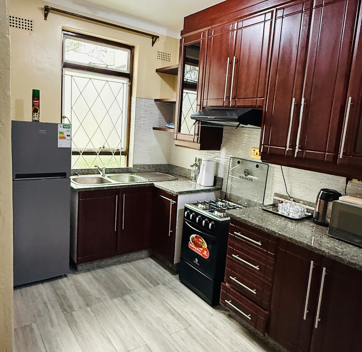 Enjoy a stylish experience at our centrally-located 2 bedroom fully furnished apartment that comes with a fully equipped kitchen for you self catering needs.