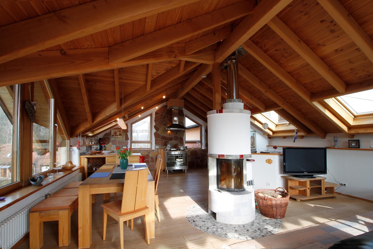 Unser gemütliches Holzchalet ist der perfekte Rückzugsort im Grünen. Offener Wohn und Schlafbereich mit Doppelbett, Küchenzeile, Bad und Terrasse mit Blick in die Natur. Große Fenster sorgen für viel Licht. WLAN, TV und Parkplatz inklusive. Ideal für Hundebesitzer, da direkt vor der Tür ruhige Spazier und Wanderwege starten. Hunde sind herzlich willkommen. Frühstück im Landgasthof ist inklusive. WLAN, TV sowie ein Parkplatz direkt am Haus stehen dir selbstverständlich zur Verfügung.
