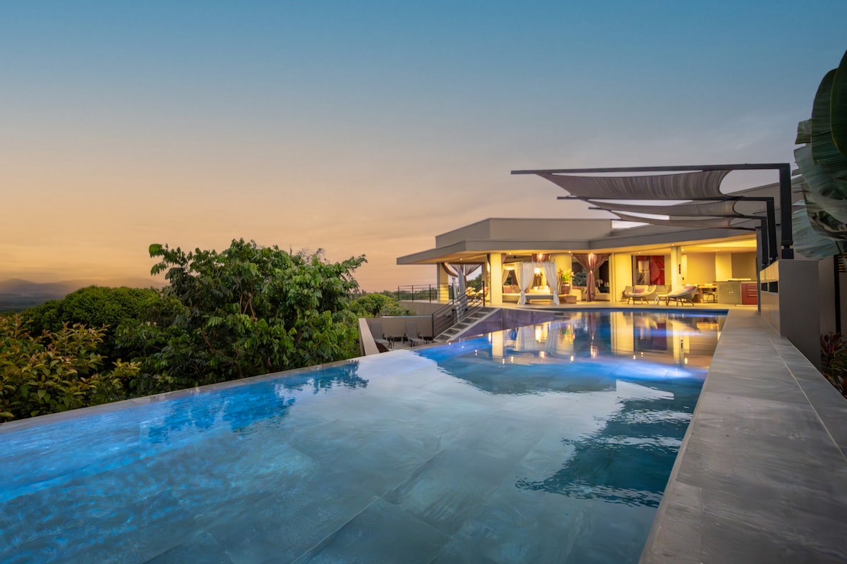 Hermosa villa con vistas al mar/al atardecer y excelente ubicación