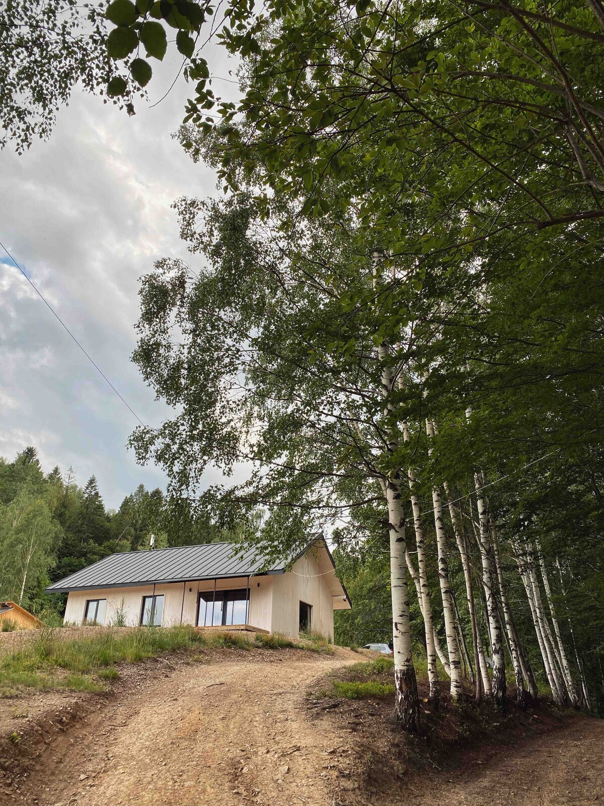 Un lugar inolvidable enclavado entre las montañas de los Cárpatos y cerca del bosque. La casa cuenta con dos dormitorios con camas grandes, una cocina totalmente equipada con electrodomésticos modernos, un cómodo salón con vista a las montañas y una chimenea donde puedes pasar una noche acogedora. La casa dispone de una terraza con muebles para relajarse y asar. La casa cuenta con baño, ducha, lavadora. Con grandes ventanales, podrás disfrutar del precioso paisaje de los Cárpatos desde tu casa.