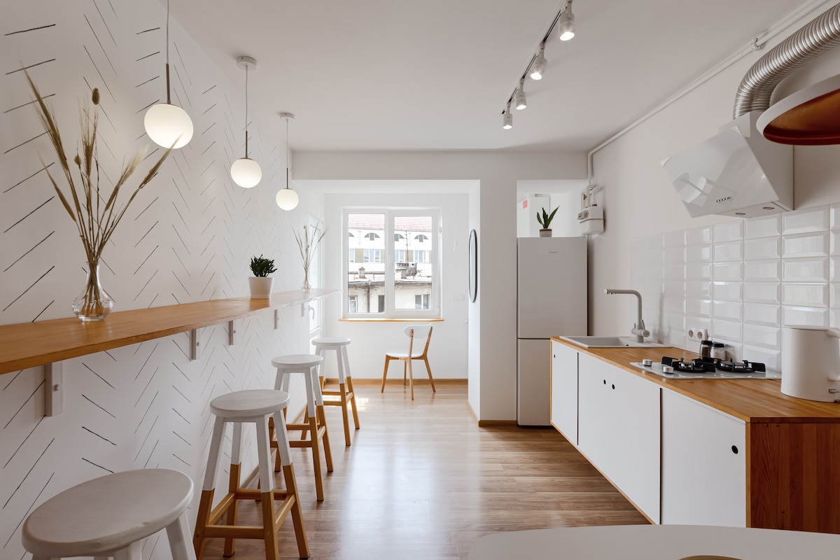 Wifi працює під час відключень. В помешканні є зарядна станція. Помешкання знаходяться в історичному середмісті, на головній пішохідній артерії міста – стометрівці. 5-10 хв до супермаркету, кав'ярень, ресторанів, парку, Ратуші, музеїв, Бастіону. Австрійський будинок 1900 року в стилі сецесія з відреставрованими вікнами, дверима та паркетом. Стильне, просторе та затишне помешкання зі зручностями. Житло оснащене 4 спальними мiсцями (лiжко та диван). Ласкаво просимо :)