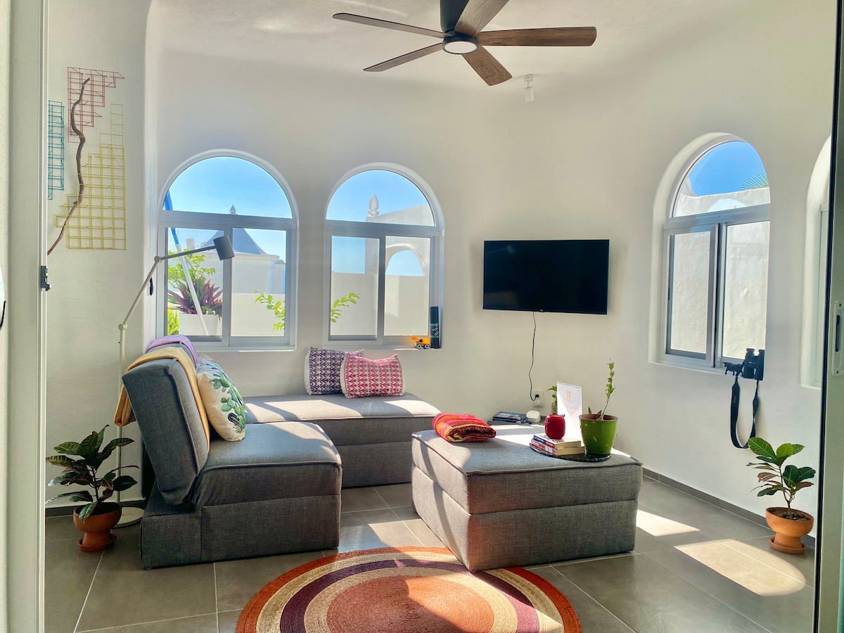 Bienvenidos a 'Torre Cuauhtzalan: Tu Santuario'. Una fabulosa propiedad de arquitectura Cicládica, que ha sido cuidadosamente equipada y decorada para que te sienta como en casa. Tenemos capacidad máxima para 4 pax y gozamos de una ubicación privilegiada cerca de la Playa La Audiencia, Hotel y Puerto Las Hadas y de todo lo que puedas necesitar en MZO. Cualquier duda o sugerencia, por favor haznos saber y haremos todo lo posible para satisfacerte. Muchas gracias, Carlos, Derde (C&D) y Graham.