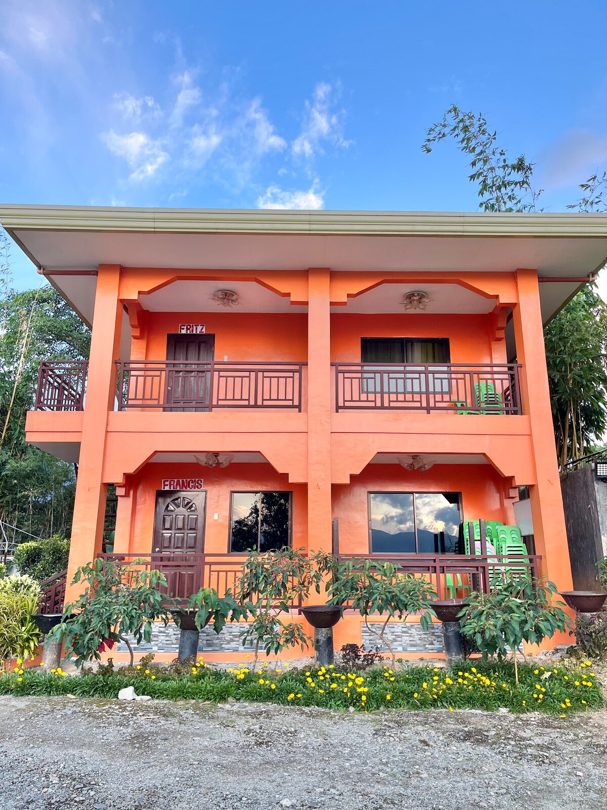 Relájate en esta escapada única y tranquila. El mar de las nubes. Las plantas ornamentales más bonitas de Asia. Rodeado de las verdes cordilleras de Maragusan, rodeado de Water Falls Hot & Cold Springs. Situado en el monte Patong Barangay Mapawa Municipio de Maragusan Davao de Oro Filipinas. Orgullosamente acreditado por el Departamento de Turismo como un alojamiento en Mabuhay. Para reservar y reservar: Zero Nine One Seven Two One Two Two Seven Five Four