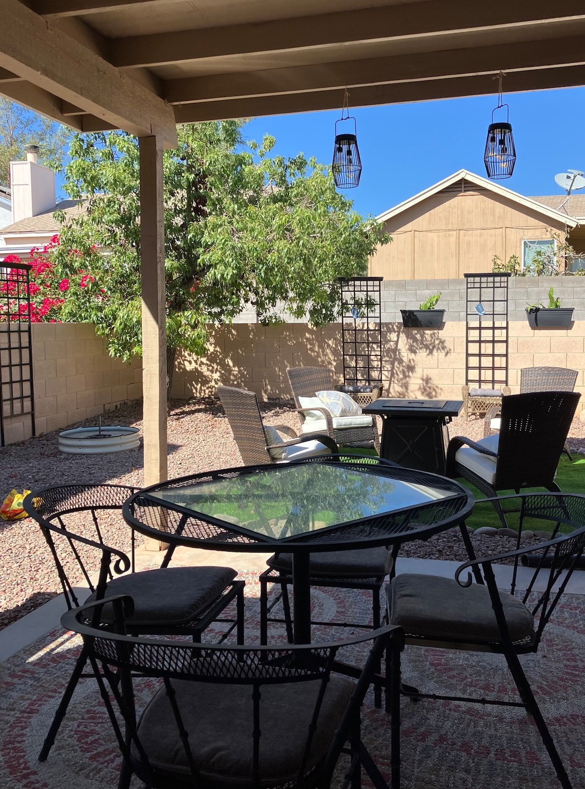 Nuestro patio Rancho Vistoso tiene vistas a un cinturón verde que se ha convertido en un refugio de vida silvestre. El patio ofrece comedor y salón, con las increíbles vistas de la montaña y el atardecer del desierto. Los servicios similares a los de un centro vacacional de Vistoso Casitas incluyen seis millas de senderos pavimentados, una piscina/spa comunitaria climatizada, una rama con parrillas para barbacoa, instalaciones para hacer ejercicio y una casa club. Hemos pasado horas en bicicleta por los muchos kilómetros de rutas ciclistas seguras y pintorescas de Oro Valley y hemos hecho senderismo por los desafiantes senderos de montaña del cercano Parque Estatal Catalina.