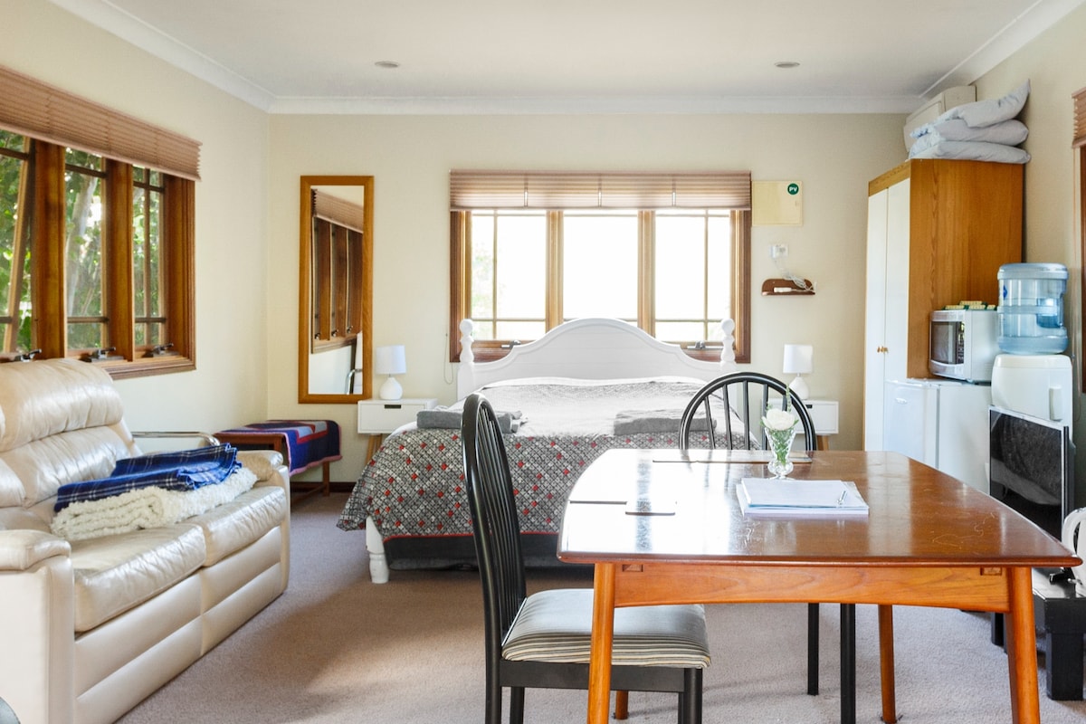 Un estudio independiente ubicado en un suburbio del noroeste, Duncraig. Los huéspedes tienen acceso independiente al estudio y al aparcamiento en las instalaciones. El estudio es un espacio nuevo, moderno y abierto, separado de la casa principal. Cuenta con cocina completa, baño con ducha y lavandería. Tiene una cama tamaño queen y un sofá cama (cuna portátil disponible bajo petición). Ten en cuenta que tenemos un labrador amistoso en el sitio.