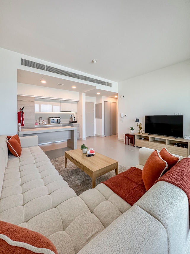 Kick back and relax in this cozy, stylish condo. The Condo 327 is a brand new sea + city view 1BR well-equipped apartment, with two private balconies w/outdoor swing, PS5, two smart TV’s (with Netflix), comfy feathered bedding, high-speed wifi, toiletries and fully-fitted kitchen on the 32nd floor of a gorgeous newly-built and secure building. Full access to all amenities; - Fitness center - Swimming pool - Sauna - Cinema - Squash court - 24/hr security.