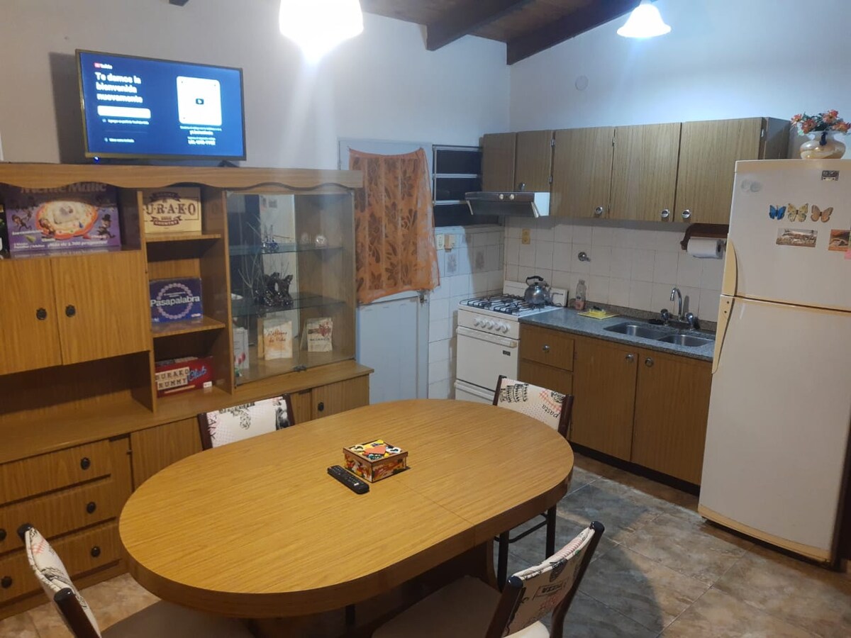 Departamento cómodo y equipado para 2 personas. Living, comedor con cocina integrada, dormitorio y baño completo. Heladera, cocina, microondas, pava, tostadora, vajilla. Dos TV y wifi. Incluye sábanas y toallas. Extras: Cochera y quincho. Ideal para parejas o viajeros que buscan comodidad y practicidad. Consultanos!