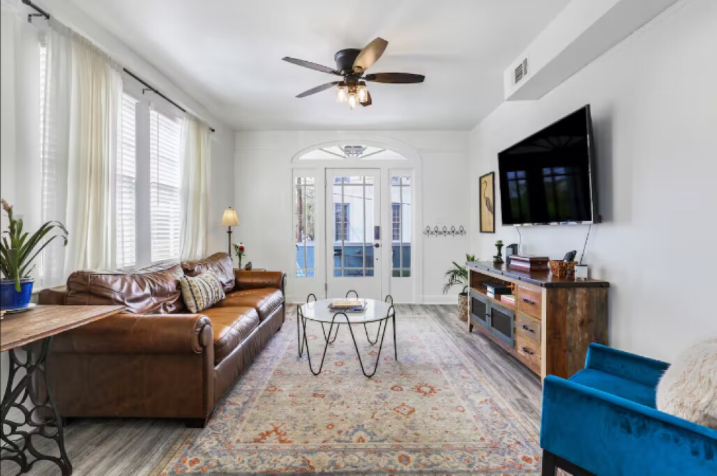 ¡Ubicación perfecta de NOLA! A pocos pasos de Magazine St., este espacioso apartamento Garden District cuenta con techos abovedados y recibe mucha luz natural. Esta es una propiedad única e histórica que cuenta con dos dormitorios con camas tamaño king, tres baños, una cocina totalmente equipada y lavadora/secadora en el alojamiento. La gran cocina abierta y la sala de estar son perfectas para relajarse después de un día de disfrutar de todo lo que Nueva Orleans tiene para ofrecer. ¡Ven a disfrutar de esta increíble propiedad!