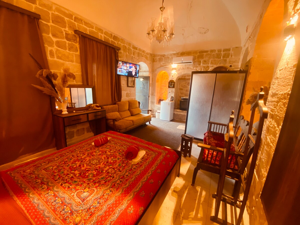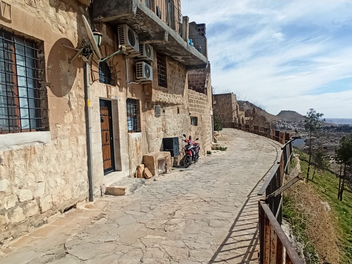 Disfruta de experiencias inolvidables en este lugar único y familiar. Se encuentra en el lugar más céntrico de Artukli. Tenemos un edificio histórico completo, una iglesia histórica, una calle de arte de la mezquita y una cama para personas con vistas únicas de Mesopotamia y el castillo. Un total de 3 huéspedes pueden alojarse al mismo tiempo y son adecuados para una familia con niños. Todas estas instalaciones solo están preparadas para una familia y tienen una terraza grande y espaciosa.