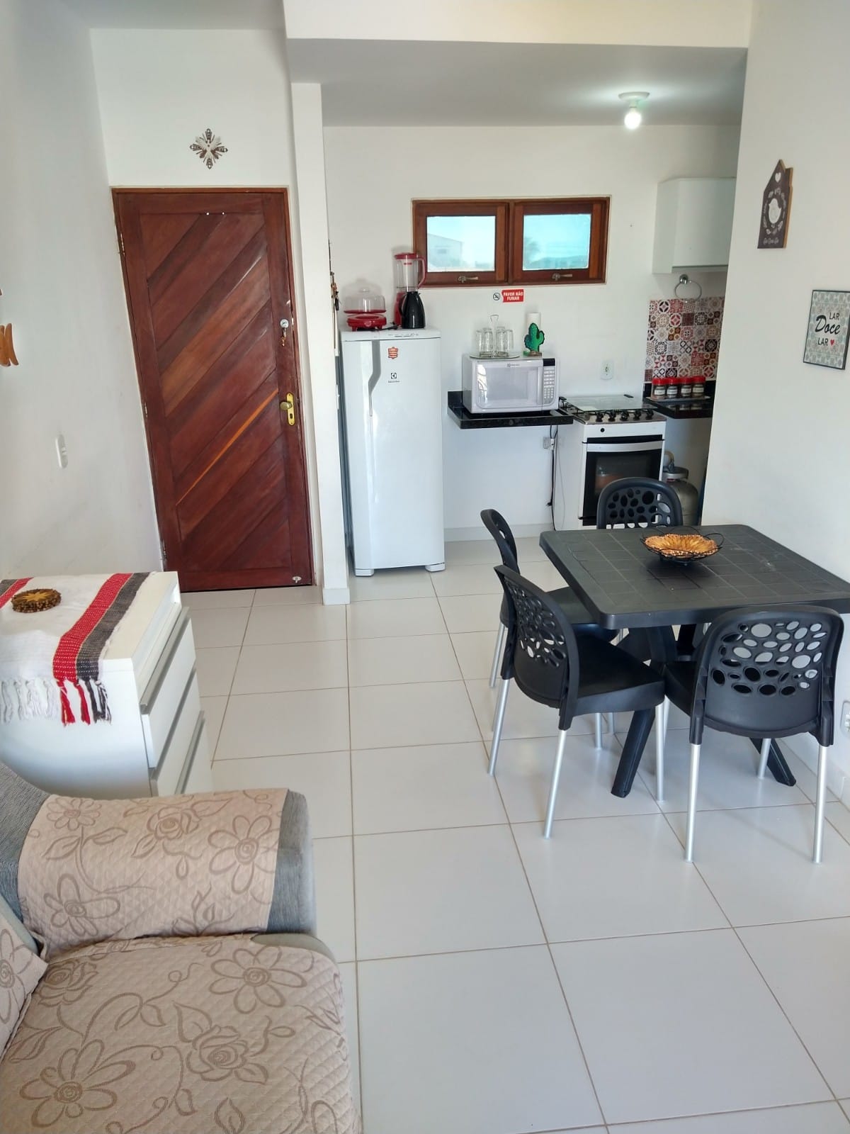 El apartamento tiene TV inteligente, aire acondicionado, nevera, microondas, estufa de inducción de 2 bocas, ducha eléctrica y la mejor ubicación de Marechal Deodoro; aproximadamente A 60 SEGUNDOS A PIE DE LA PLAYA francesa. Está rodeado de restaurantes y cerca de supermercados y farmacias. Condominio seguro con piscina y área de socialización. Garaje abierto/riesgo de no poder conseguir un lugar porque hay pocos y por orden de llegada