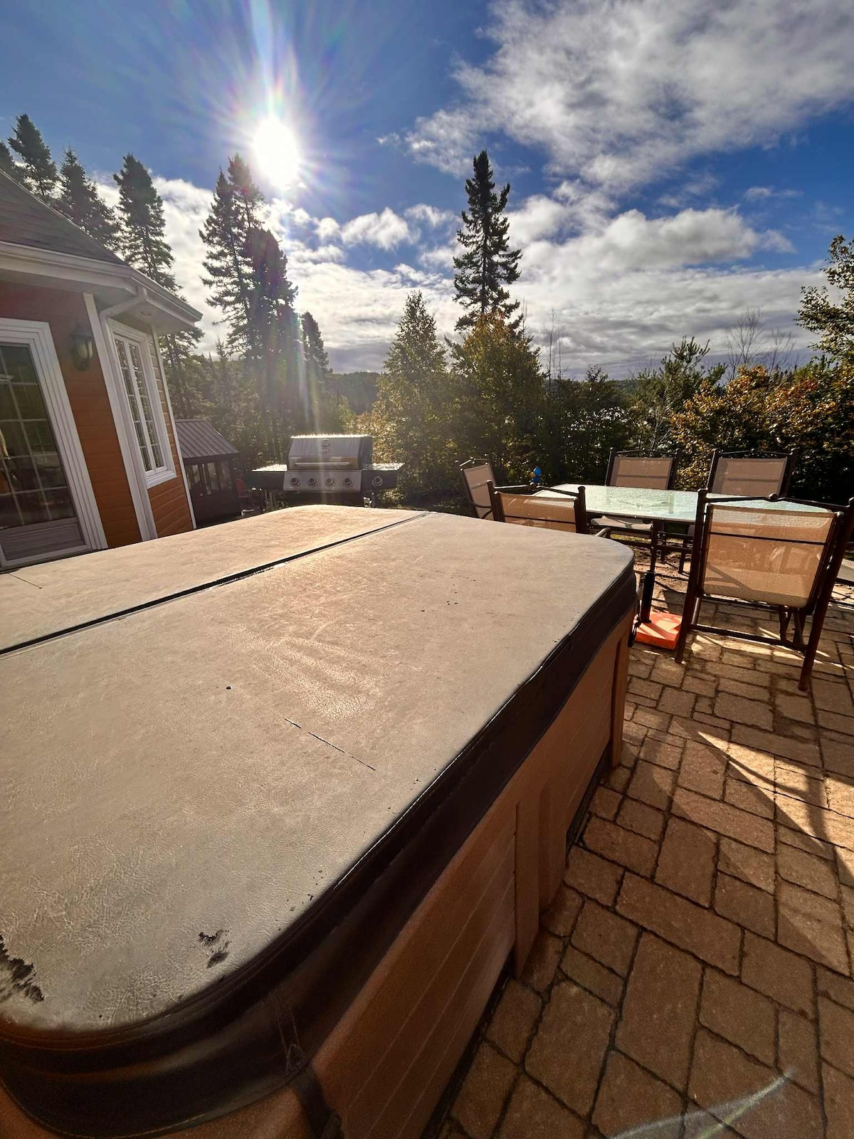 ¡El lugar perfecto para relajarse sin culpa! La puerta del patio acristalada de 16’ largo da la impresión de estar al aire libre en todo momento; incluso cuando llueve o nieva, pero con comodidad y calidez. Verano: Para los amantes del rafting o kayak en el río Mistassibi o de senderismo que bordean el río. Acceso a pequeñas bahías para bañarse o admirar los rápidos. Invierno: Disfruta de los senderos de raquetas de nieve. Cerca de los senderos para motos de nieve la Pasarela del paralelo 49.