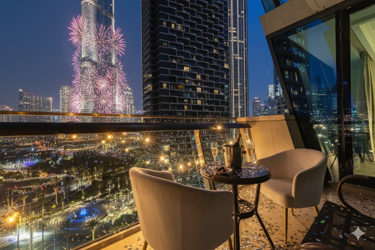 Elegante 1BR con el horizonte de Dubái y vistas al Burj Khalifa