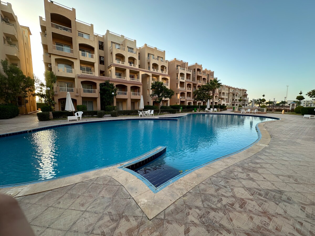 Relax in this comfortable 2-bedroom apartment in Porto Golf Resort, close to the Crystal Lagoon and with easy beach access. Ideal for families, couples, or friends seeking a peaceful coastal getaway in New Alamein. ⭐ Loved by guests for cleanliness, comfort, and great location. The apartment includes air conditioning, fast Wi-Fi, a fully equipped kitchen, and comfortable sleeping arrangements, with access to the lagoon, nearby pools, and resort amenities—perfect for short or longer stays.