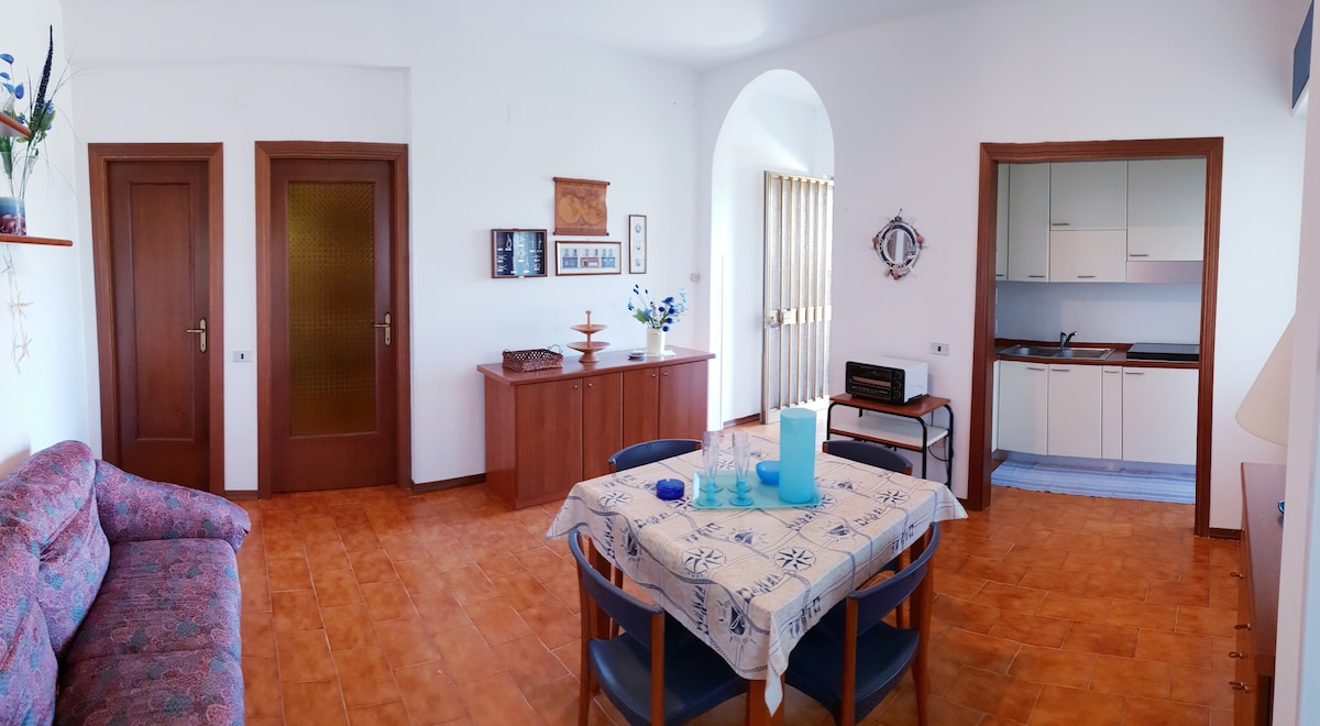 Light Blue House is a refined apartment ideal for: • Families with children looking for comfort • Couples for a romantic getaway • Those who want to relax by the sea Located on the 5th floor with elevator in an elegant residential complex with garden, it is only 50 meters from the Montesilvano seafront. From the spacious terrace, you can enjoy a splendid sea view and let yourself be lulled by the sound of the waves.