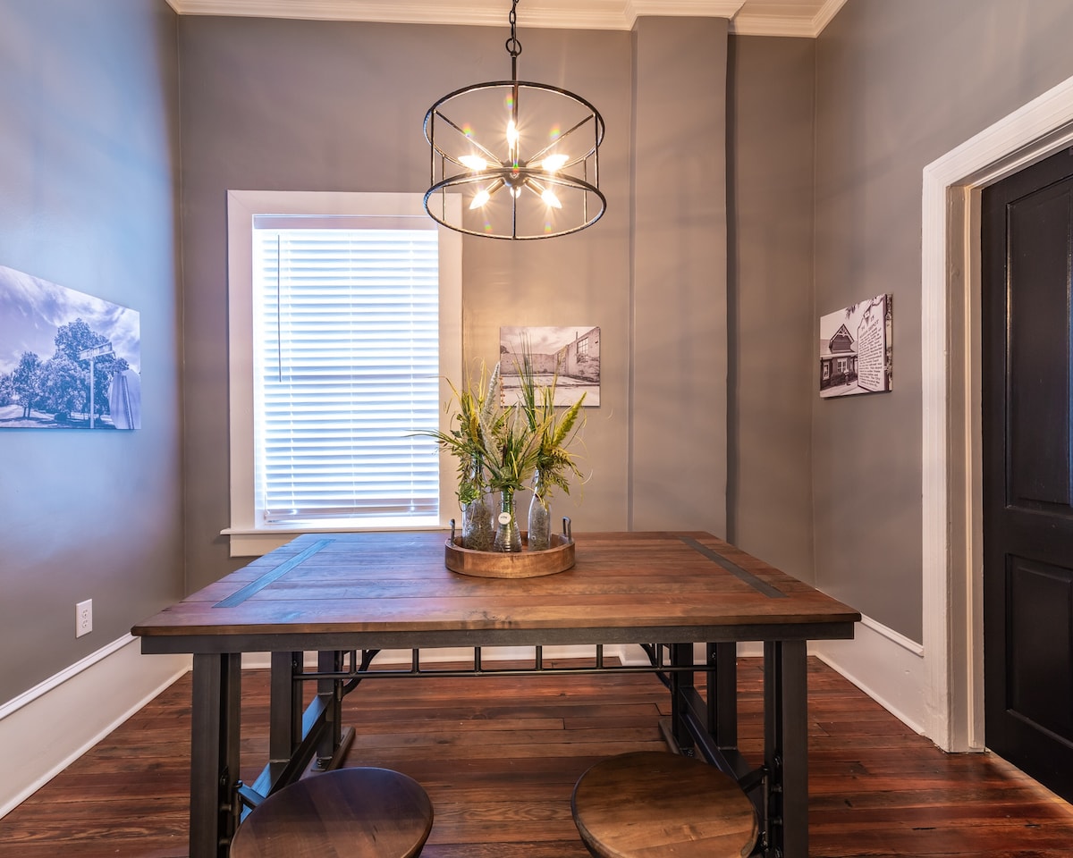 Ubicado en 109 Arch Street, en el centro de Marion, Carolina del Sur, es un apartamento totalmente amueblado que ofrece todas las comodidades de un hogar y mucho más. Ubicado en un edificio histórico en el corazón del Pee Dee, The Loft tiene un carácter encantador con paredes de ladrillo visto y suelos originales de madera. Ofrecido como alquiler por noches, tu experiencia comienza cuando te reciben con linternas de gas y continúa en el interior, donde encontrarás nuestro espacio habitable de 1000 pies cuadrados.