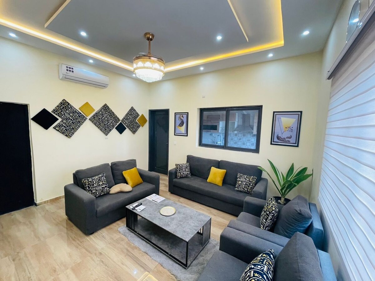 Bienvenido a nuestro moderno apartamento en Lomé. Disfruta de la comodidad y el estilo en este apartamento completamente amueblado. Situado en Amadahome, a 25 minutos del centro de Lomé, a 27 minutos del aeropuerto, en un barrio tranquilo. Cámaras de vigilancia al aire libre y un guardia de seguridad nocturno. El servicio de alquiler de coches está disponible. Para garantizar la comodidad y el respeto por el espacio, todos los huéspedes pueden recibir hasta 2 visitantes a la vez. Gracias por tu comprensión. {Wifi gratuito, agua, gas para cocinar } El huésped es responsable de la electricidad