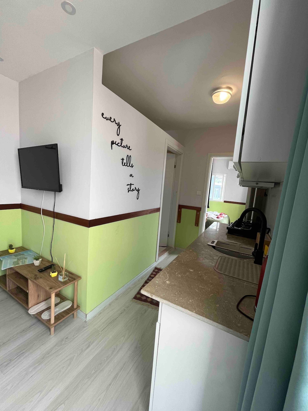 Nuestro apartamento, que preparamos meticulosamente para la temporada 2023, se encuentra en un jardín independiente. Nuestra casa, que tiene una impresionante vista al mar, está decorada de acuerdo con el estilo de vida minimalista. Hay 2 aparatos de aire acondicionado en la sala y en el dormitorio. La silla del salón se abre y se convierte en cama. Hay un grupo de asientos en el jardín. Está a 10 minutos a pie de la playa y los restaurantes y a solo 2 minutos si se prefiere el vehículo.