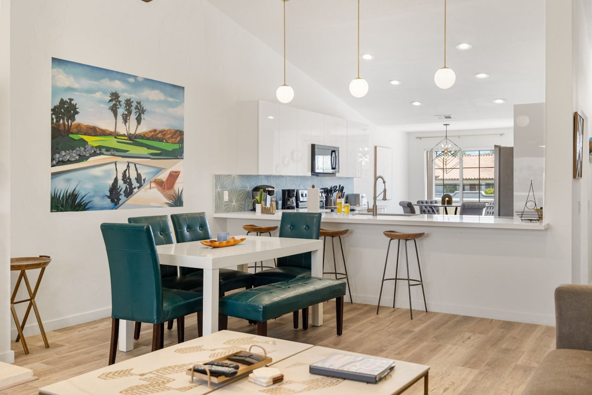 ¡Este colorido y contemporáneo apartamento de 2 dormitorios/2 baños en la planta baja es tu refugio perfecto en Palm Desert! Se encuentra a pocos pasos de una piscina/bañera de hidromasaje con vistas al cielo bordeado de palmeras y está equipado con todo lo necesario para relajarse. Puedes ver la puesta de sol sobre las montañas desde el patio trasero, sentado alrededor del pozo de fuego enclavado dentro de tu exuberante oasis privado. ¡Nos encantan los amigos peludos! Hay una tarifa adicional de 100 dólares que se añade a la reserva en el momento de reservar. También hay disponibles un corralito y una silla alta.