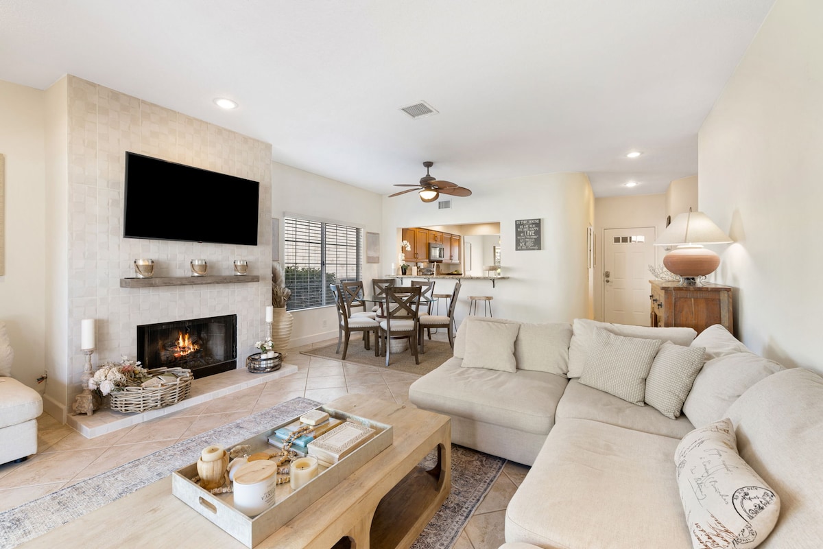 Remodeled, modern, walking distance to El Paseo! Our home is the perfect place to recharge and enjoy everything the desert has to offer! Featuring 2 bedrooms, one with 2 XL twin beds that can convert to a Cal King instead! 2 baths, high-speed internet, Free Level 2 EV Charging, pool and jacuzzi, fully equipped kitchen, new appliances, fire pit and loads of space for indoor/outdoor enjoyment. Located within walking distance of El Paseo, exquisite dining, shopping and even The Living Desert zoo 😃