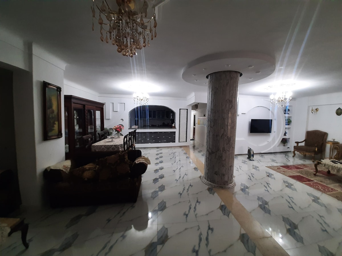 Disfruta de tu estancia en un espacioso apartamento con magníficas vistas al mar. Mientras te hospedas en este apartamento, te sumergirás en lo mejor del ambiente y el patrimonio de Alejandría. El apartamento es bastante grande y perfecto para alojarse con amigos o familiares para explorar la ciudad y su rica historia. Tendrás acceso completo a todo el apartamento, pero estaremos en Alejandría, así que si necesitas algo durante tu estancia, ¡siempre estaremos aquí para ayudarte!