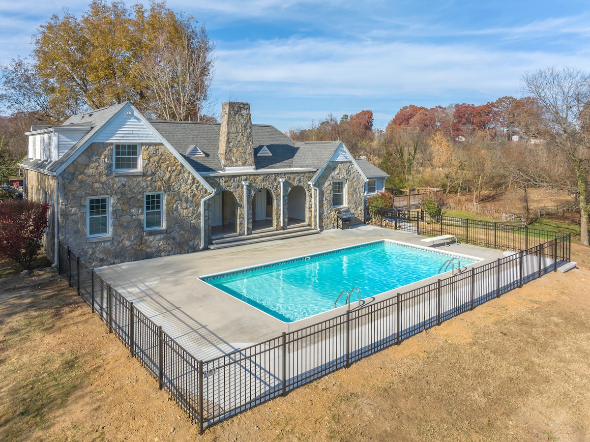 Ubicado en Maryville, TN, con 13 acres de hermosos jardines con vistas a las montañas. Fácil acceso al Parque Nacional de las Montañas Humeantes para practicar senderismo, pesca, paseos en barco, paseos a caballo, Dollywood y la carretera Foothills Parkway. Al final del día, vuelve, quítate los zapatos y disfruta de los juegos de jardín en el lugar: corn hole, caminar por nuestros 13 acres, sentarte junto a la cascada de manantial natural. A 20 minutos de Townsend. A 45 minutos de Cades Cove. 45 minutos - Pigeon Forge A 15 minutos del aeropuerto de Knoxville. A 10 minutos de Maryville.