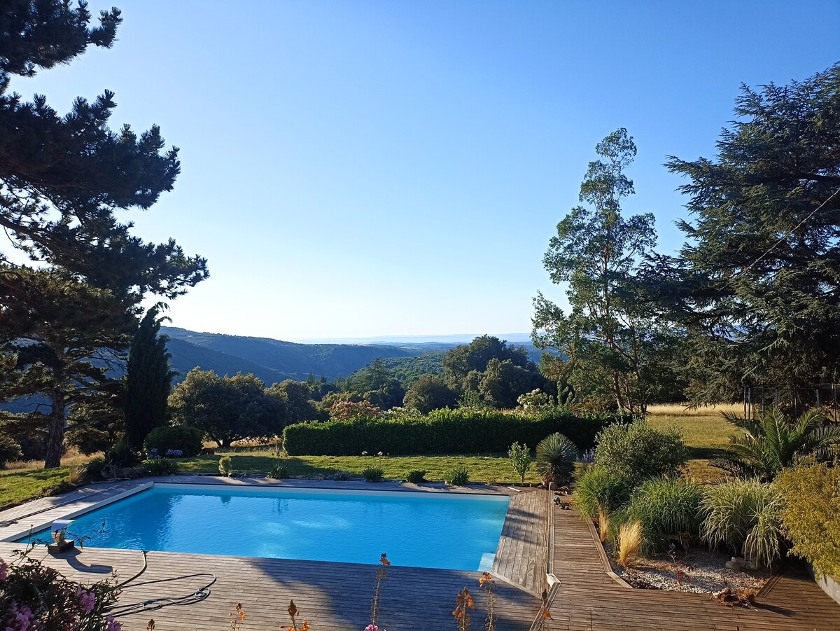 «El herrerillo y los cedros» Venga a relajarse en este alojamiento luminoso y sereno. Abierta a la naturaleza, esta casa es propicia para la calma y la desconexión de la vida cotidiana. Le espera una magnífica puesta de sol sobre el lago de la finca. A 750 m. de altitud, venga a disfrutar de un aire agradable en verano y de muchos paseos, se puede bañar en el lago del pueblo a 5 minutos a pie. En invierno, la nieve se deja caer, ofreciendo paisajes mágicos. Ubicación ideal para visitar la Occitania y sus tesoros.
