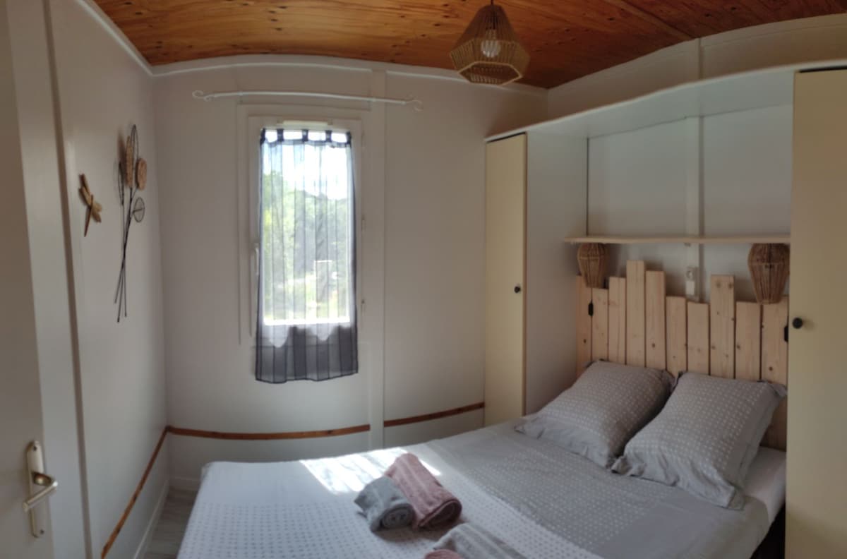 A 6 km de la autopista A75, En uno de los pueblos más bonitos de Francia, habitación independiente de 16 m2 en antigua casa de viticultores, acceso directo desde jardín cerrado con sillones y mesa. En total tranquilidad, habitación abovedada con cuarto de baño con ducha (lavabo y cabina de ducha) y aseo separado, persiana opaca, sillones, decoración cuidada. Bicicletas disponibles Posibilidad de desayuno por 10 € por persona 2 ríos atraviesan el pueblo de 635 habitantes, 2 restaurantes y tiendas básicas.