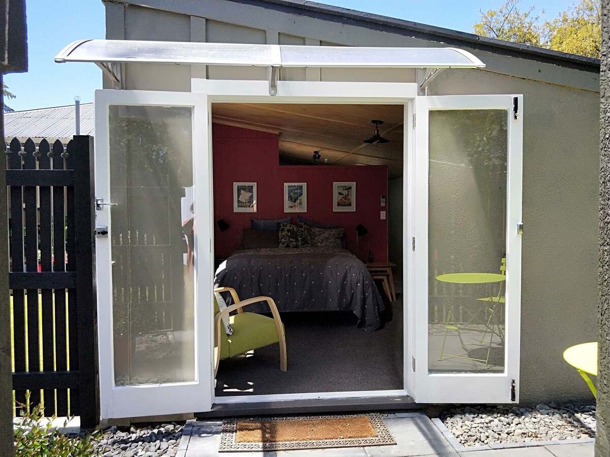 Keep it simple at this peaceful and centrally located sleepout in Masterton. Only a short walk to the main street shopping precinct which includes some great bars and restaurants. This sleepout provides everything you need for a night or two away in the Wairarapa. It's tastefully decorated with Queen bed, double glazing and its own entrance for easy self check-in and check-out. Tea and Coffee / WiFi & Freeview provided.